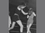 1965 war ich Weser-Ems Vizemeister im Jugend-Bantam-Gewicht, dazu musste ich nur zwei Kämpfe verlieren (hier bekomme ich - rechts im Bild - mal wieder einen auf die Nuss)
