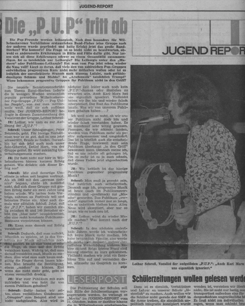 Ende 1970 war dann Schluss mit P.U.P. Peter wollte sich musikalisch weiterentwickeln, und ich war jung und brauchte das Geld. Das Studium stand an.