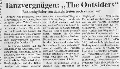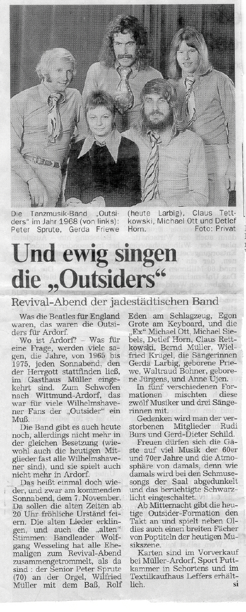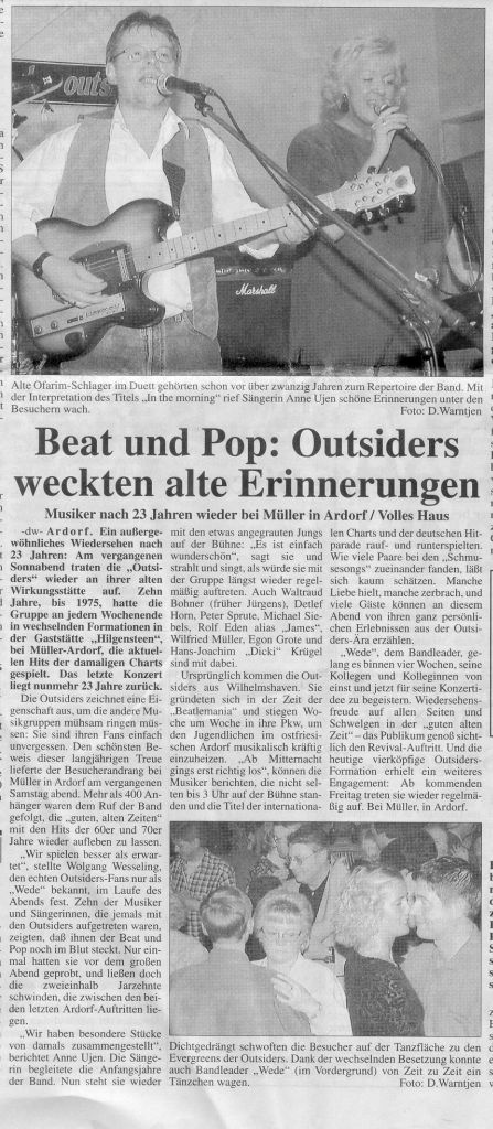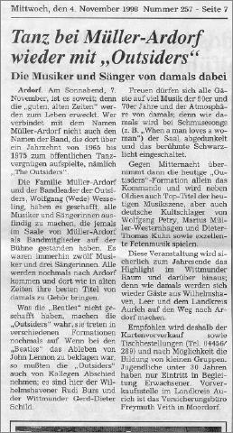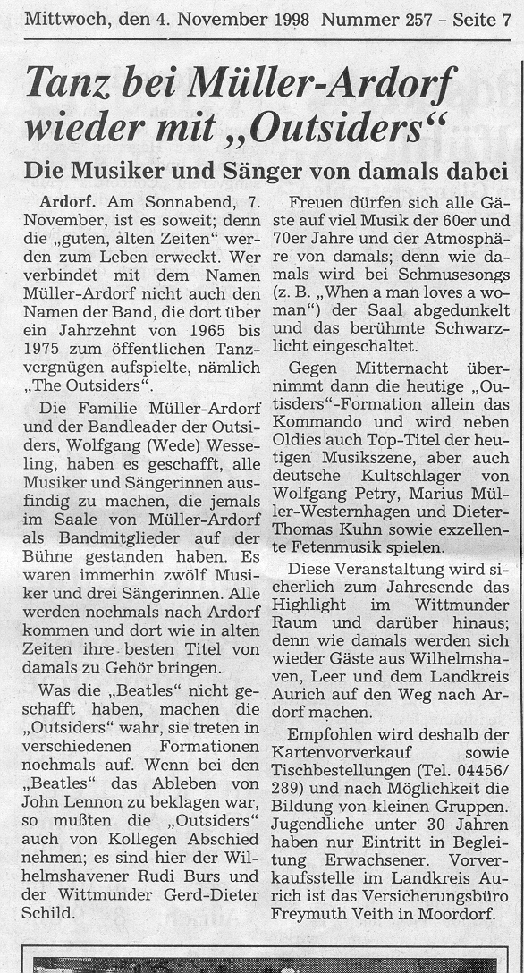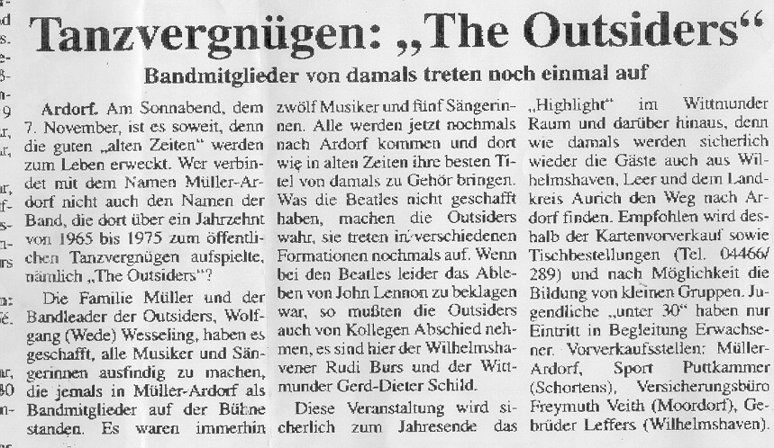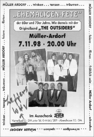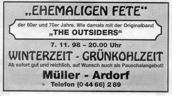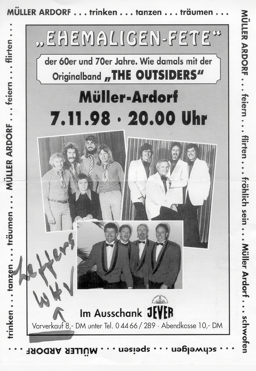 Im November 1998 organisierte Wede ein Revival aller Outsiders, die jemals im ehemaligen Muckertempel Müller in Ardorf gespielt haben. Von 15 aktuellen und Ex-Mitgliedern fanden 10 den Weg nach Ostfriesland.