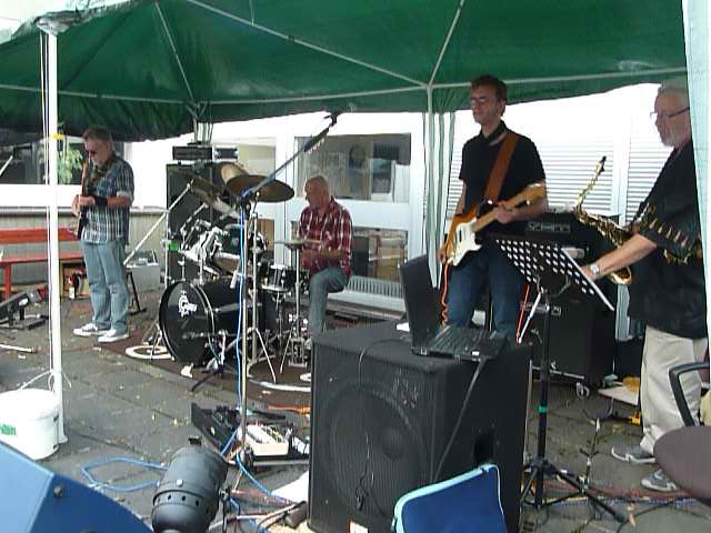 Thomas g+v, Zimo dr, Deddy b+v, Klaus sax 07. August 2013