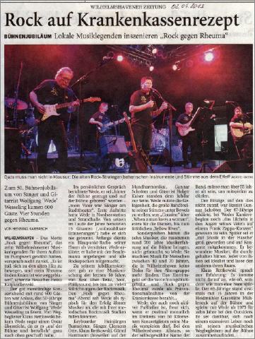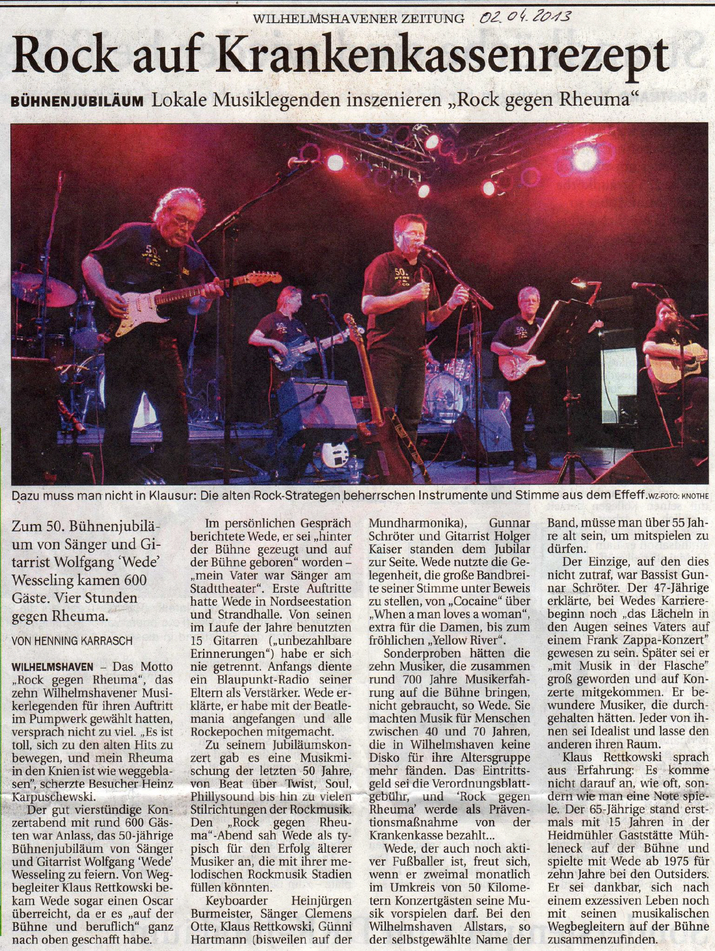 Am Ostersonntag 2013 feierte Wolfgang (Wede) Wesseling unter dem Motto "Rock gegen Rheuma" sein 50. Bühnenjubiläum im Pumpwerk Wilhelmshaven. Begleitet wurde er von den WHV-Allstars (die "Alten Säcke"), die über Jahrzehnte seine musikalischen Weggefährten waren: