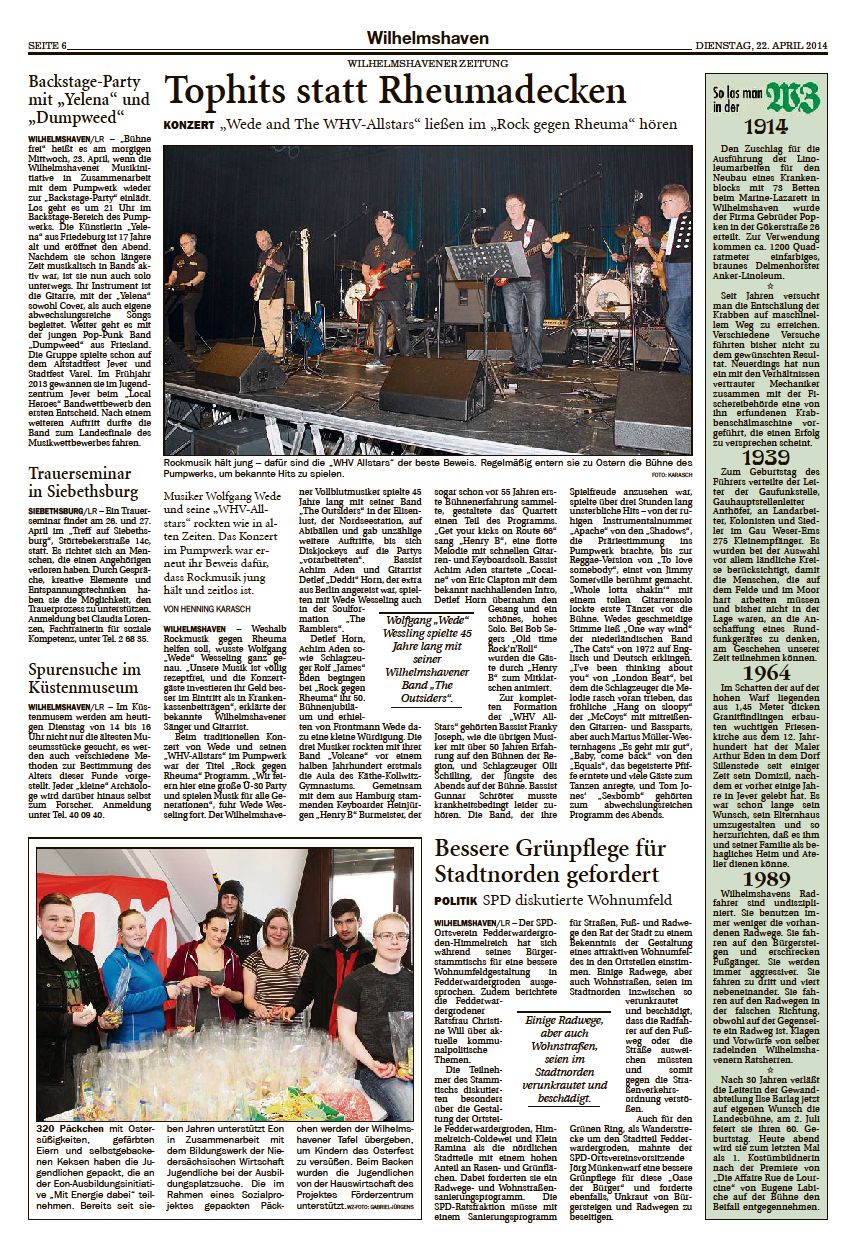 Unter dem Motto Rock gegen Rheuma machten wir als WHV-Allstars in folgender Besetzung wieder das Pumpwerk unsicher: